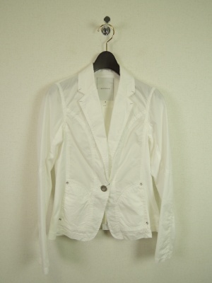 白のジャケットはそれだけで清涼感ありますね。白に合うカーキでまとめてポイントは赤のバッグ!スタイリッシュ度70%、フェミニン度30%。