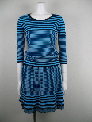 セパレーツになっているニットワンピース・・。ブルーのボーダーが爽やかです。Gジャンを羽織ってみるのもいいですよ!フェミニン度70%、アクティブ度30%。