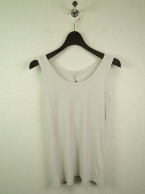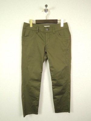 カーキ×ブルーの組み合わせ。ニットの下にあえて黒のタンクトップでシックにまとめて大人のカジュアルに!アクティブ度90%、スタイリッシュ度10%。