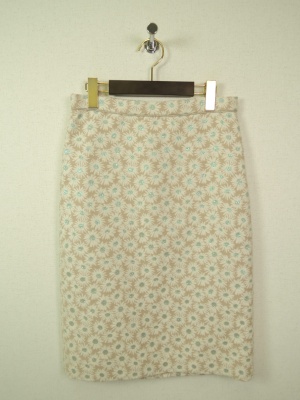 ジャガード織りのインポート生地をセットアップしたややカッチリしたデザインとやや丈長スカートは今年顔のスタイルですね!スタイリッシュ度80%、エレガンス度20%。