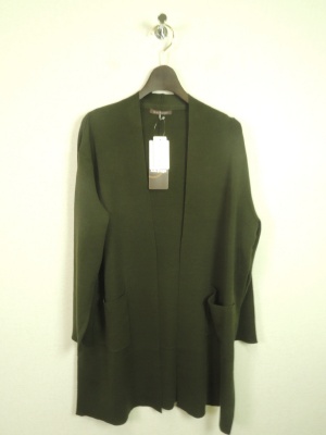 トロミのあるパンツには動きのあるロングカーデで秋の気分を!スタイリッシュ度70%、エレガンス度30%。