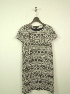 幾何学模様の柄が今年っぽい。シンプルなデザインだけに柄で今年のイメージを出して!エレガンス度70%、スタイリッシュ度30%。