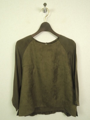 フェイクスエードのスクエアトップはショートパンツと合わせるとバランスが良い。大人可愛いスタイリングを楽しんで!フェミニン度70%、アクティブ度30%。