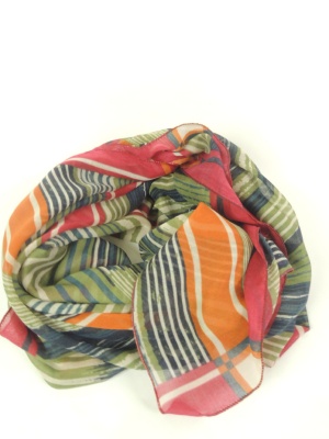 あぜ編みのシンプルニットとフレアースカートで合わせてポイントはストールの色で顔まわりを明るくして!フェミニン度70%、エレガンス度30%。
