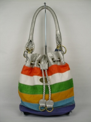 ふんわりワンピースはやっぱりロールアップデニムと合わせたい。遊びにマルチな色使いのバッグをアクセントにしてアクティブに!アクティブ度90%、フェミニン度10%。