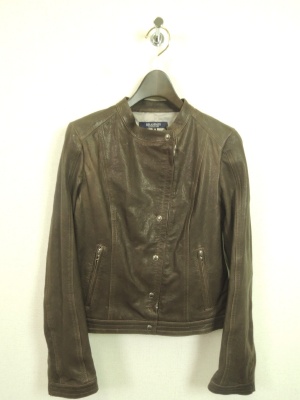ブラウス+スカートにハードな皮革ジャンを合わせて大人っぽく着こなす!エレガンス度70%、スタイリッシュ度30%。