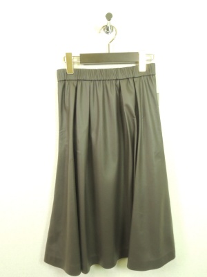 クラシックなデザインのブラウスにグレーのスカートで柔らかいイメージを作る。パールネックレスがよりクラシカルに映りますね!フェミニン度80%、エレガンス度20%。