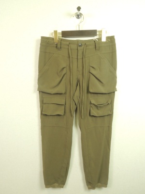 デニム地のブラウスはデイリーにお薦め。カーゴパンツのカーキを合わせて動きやすいコーディネート!アクティブ度90%、フェミニン度10%。