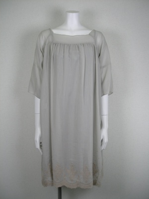裾の刺繍が可愛いふんわりワンピースは、アクセだけでさらりと。デコルテを見せるスクエアネックでさりげなく、女らしさもアピール!フェミニン度90%、アクティブ度10%。