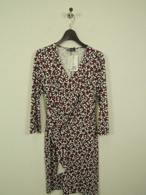 カシュクール風のデザインをあしらった花柄ワンピース。 V字開きになっているので首から鎖骨にかけて綺麗に見せてくれます。 スカート部分はラップ風になっています。 中はそのままつながっているので足が見える心配がないので とても楽に着れます。 片方の ウエスト部分にギャザー寄席しているので、 ウエスト部分も気になる心配なしです。 同じシネカノンのワンピースで柄やデザインがやや違うものがあります。 ID:93335、ID:93371も合わせてご覧ください。