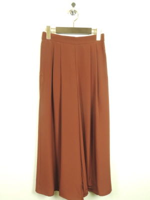 タックの入ったスカーチョはあまり広がらずに すっきりとしたデザインが特徴。 ビッグシルエットのシャツとのバランスが取れて良い。 色も流行の色を組み合わせてシックなイメージに!