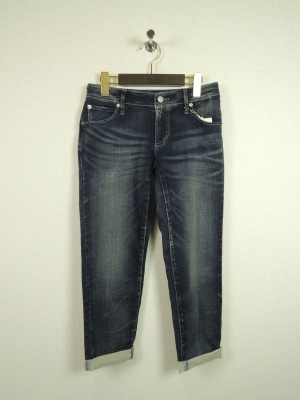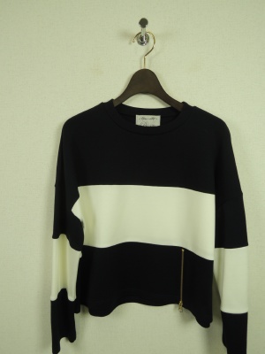 大胆な配色カットソーはシンプルなデニムに合わせるのが良い。 少し裾が細くなったデザインなので 上半身が大きく見えずスッキリした見え方になっています!