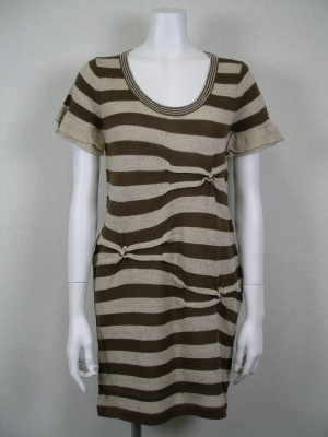 (タイトスカートのIラインコーデ)カーゴデザインのタイトスカートは後ろスリットの足さばきの良いスタイルです。トップスはざっくりしたサマーニット。フロントの裾はアーチになっているので、オーバーに着用してもすっきりしたシルエットです。 | |