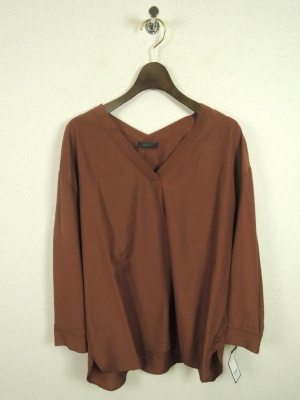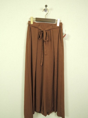 今日着用したワイドパンツは裾の部分が前から見るとアーチ型になっています。 (足の内側が短く、外側が長い)。 アーチ形になることで足が長く見える効果があり、 ふくらはぎ部分もすっきり見えます。 ウエストはリボンのベルトでワンポイントになっています。 新着で入ってきたパシオーネのV字開きのブラウスと合わせて 上下のバランスをとれたコーディネート!