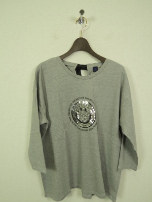 今季 全体的にトップスは緩めのビックシルエットが多く出ております。 カットソーも少し大きめのデザインでゆっくり着れます。 ワンポイントとしてスマイル柄のスパンコールがキラキラとして アクセサリーの代わりになります。 後ろ襟の部分はリボンになってい て、前から見ても後ろから見てもお洒落。 定番のデニムにインヒールのある牛革ローハーを合わせてカッコよく。 ビット付なのでカジュアルにもきれい目にも使えてとてもお洒落です。