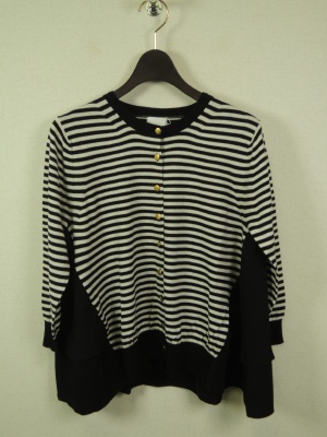 ソーノのデザインはいつも他とは違う少し凝ったものが多く 今回着用したカーディガンも前から見ると、ボーダーですが 後ろ部分がティアードになっていてAラインでとても可愛いシルエットになっています。 細身のデニムと合わせればバランスのとれてすっきり見えます。 デニムはストレッチ入りでとても動きやすくこれからの時期ブーツとも合わせやすい一枚です!