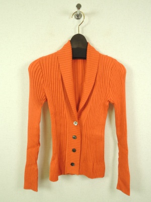 明るめのオレンジの新作カーディガンでコーディネート。 ベージュのスカートに合わせて正統派ですが少し挑戦した色を入れて・・。 リブ編みのカーデが縦のラインを出してすっきりと見えます。 スカートはボリュームが出る分トップスはすっきりまとめて!