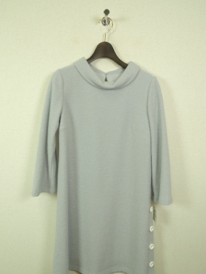 今日は爽やかなサックスブルーのフィグノ・ワンピースをご紹介します。 圧縮ニットの素材でお袖部分まで裏地がついているので とても着心地も良いです。 お袖は7分袖暗いです。 横にスリットのボタンがワンポイントになってとてもお洒落です。 首元にファーのマフラーを合わせてより女性らしさのコーディネートにしました。