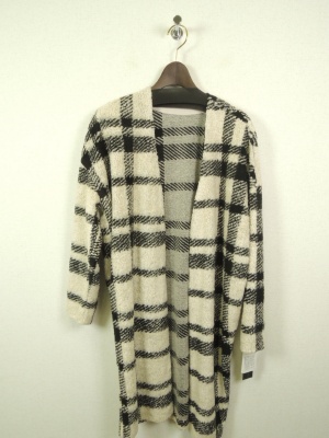 大きなチェック柄のコーディガン。 シンプルな上下の組み合わせに一枚羽織るだけで ちょっとおしゃれ度がアップする。 ドロストのレザーパンツをヒールで合わせて大人のエレガンス デザインの完成!