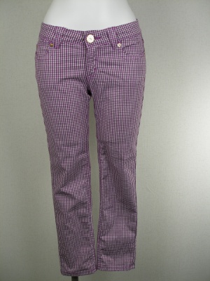 パープルのギンガムチェックの短丈パンツ。色使いがちょっと珍しいですね。トップスにワンポイントのカットソーを持ってきてよりカジュアルなコーディネートにしてみました!アクティブ度80%、スタイリッシュ度20%。