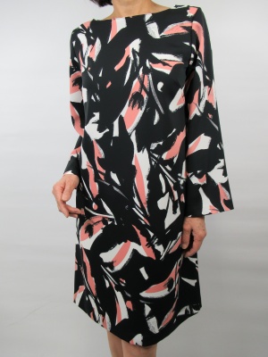 ヌークのとろみのあるワンピース。 黒にピンクと白の柄が入ることによって 印象が明るく見えます。 袖はふんわりしてスリットが入っているので 今までにないデザインのワンピース。 ワイドリブのロングカーデをさらっと羽織って 今年らしさをワンポイント で取り入れました!