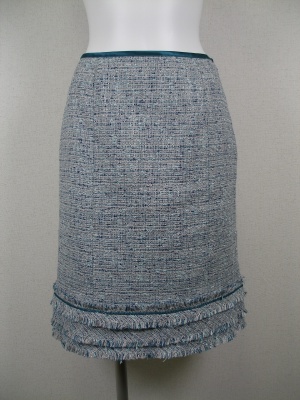 (ちょっとおしゃれにしたい日のコーデ)Aラインのスカートは細かいリボンをあしらったエレガントな生地です。トップスもふくれ織りのおしゃれな生地が特徴で上下合わせてとてもおしゃれなお出かけコーデの完成。 | |