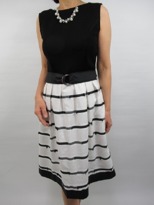 今年らしいウエストベルトがあるタイプのワンピースです。 ウエストのベルト部分にポイントが来ることによって メリハリのついたデザインになっています。 切り替えで異素材になっているので ワンピースぽっく見えないのに 楽にさっと着れる一枚あると便利で す。 シンプルなカーディガンを合わせました!