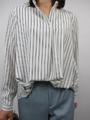 ストライプのブラウスにブルーのワイドなパンツを 組み合わせてみました。 ワイドですが広がりを抑えて スッキリ見えるシルエットです。 デイリーにはかごバッグで カジュアルなコーデにしてみました!