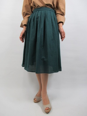 シックな色合いのコーディネートですが シルエットはフェミニンです。 スカートはレースの生地のタックスカート。 ふんわり感がオシャレですね。 トップスにはフリンジを使った こちらもふんわりしたデザインが特徴のブラウス。 色合いが深いのでフェミニ ン度を 抑えた大人カワイイコーデです!