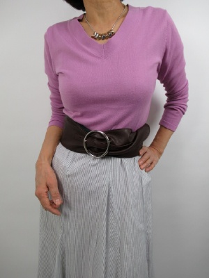 | スポーティ・アクティブ (ピンク×デニムのアクティブコーデ)優しい発色のピンクニットが、コーディネートをパッと華やかにしてくれる一着。程よくゆとりのあるシルエットで、身体のラインを拾わずリラックスした着心地です。デニムと合わせれば、大人のきれいめカジュアルが完成。明るさと落ち着 き、大人のきれいめカジュアルが完成。 |