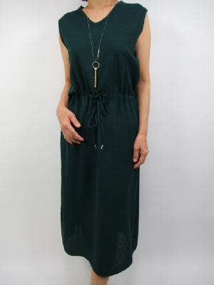 ちょっと丈長なニットワンピース。 ウエストを絞るタイプです。 タイトなスカートラインが大人のシックな 装いを表現してくれます。 深いグリーンは地味に見えるが シンプルな型なので 逆に大人っぽい印象を作ります。 羽織るカーデで大人っぽく!