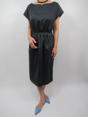 後ろのレースアップが印象的。 背中でひねりを加えてウエストのメリハリがあるのが特徴。 レースアップ部分は中にキャミワンピが付いているので 背中の開き具合は気にならないですし お袖もフレンチなので羽織などなくても安心して 一枚でも着られるお出かけ ワンピース!