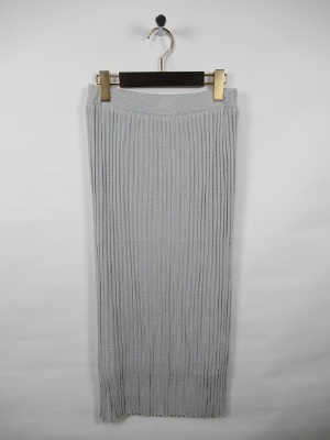 シルバーラメ系を使ったワイドリブニット。 そのセットアップは大人っぽいスレンダーな一着です。 大きく開いたV字のネックに膝下のタイトスカート。 ポイントは流行のサッシュベルトで メリハリをつけること。 さらに着流しカーデを肩にかけると より一層オシャレ度が増します。 お出かけコーデになります!