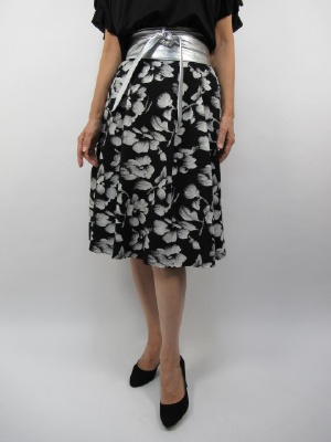 花柄のスカートはシルバーラメ糸で光沢感が出て とても華やかな印象です。 イタリア製の生地でウエストにタックが入っているので ふんわりとしたシルエットになります。 お袖が特徴のあるカットソーを合わせました。 トップスはインして少しふんわりブラウジ ングして頂くと ウエスト部分でのメリハリもあり、こなれた感じになります!