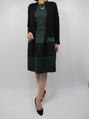 きちんと感を印象付けるために ワンピースハとても便利な一着。 深いグリーンと黒の配色が秋を感じさせます。 ボレロはニットですがしっかりした編地ですので ワンピースに合わせてもカジュアルにならず エレガントな装いになります!