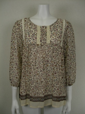 ガーリーナ小花柄ブラウスには、やっぱりデニムが一番。インナーにラメ入りのキャミを合わせると、ほんのりキラキラして可愛いですよ!アクティブ度70%、フェミニン度30%。