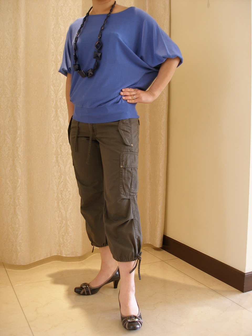 | スポーティ・アクティブ (カジュアルな落ち感を楽しむパンツ)デイリーのオシャレは少しクラスアップしたカジュアルパンツがあると便利。とろみのある落ち感のあるパンツにちらっとブルーのシャツで大人カジュアルスタイル。 |