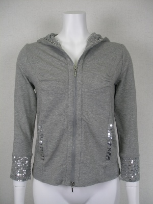 シフォンの中にスパンコールを隠したワンピースをパーカでカジュアルに。キラキラを日常に取り入れて!エレガンス度60%、アクティブ度40%。