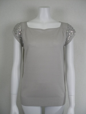 ふわっと広がるウエストマークのスカートにはシンプルニットを。肩のスパンコールとスカートの広がりで、ウエストを細く見せてくれます!エレガンス度90%、スタイリッシュ度10%。