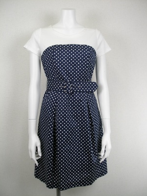 Tシャツと重ね着したようなデザインのワンピースは、クラシカルなドット柄。一枚でも可愛いですし、パンツを合わせてもOKです。フェミニン度60%、スタイリッシュ度40%。