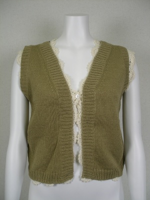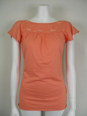 クロシェ部分だけでも使えるニットベスト。ニットの白とコーラルオレンジが夏らしい色合いに!フェミニン度90%、アクティブ度10%。