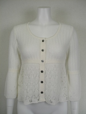 コットンのワンピースに白のカーディガンで夏のお出かけスタイル。甘口でまとめたので、小物はあえてシルバーでクールに!フェミニン度60%、エレガンス度40%。