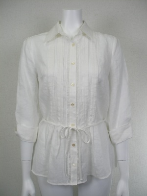 麻のロングシャツからティアードがのぞく、スッキリしながらも可愛いコーディネート。色を絞ると大人っぽく仕上がります!フェミニン度70%、エレガンス度30%。