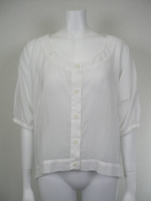 後ろが長くなった変形ブラウスを、さらりと羽織って。カジュアルスタイルをまっ白なブラウスが上品に見せます!アクティブ度90%、フェミニン度10%。