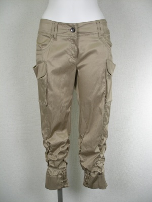 カーゴサルエルは流行。夏にこげ茶を持ってくると暑い日差しにとてもよく映えますね。ターコイズのストールがポイントです!スタイリッシュ度80%、アクティブ度20%。