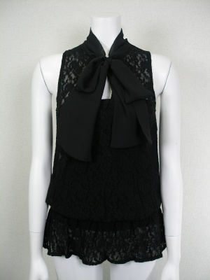 レースのブラウスも黒だと大人っぽくてオシャレ度がアップしますね。甘いスカートでエレガンス度を強調!エレガンス度80%、フェミニン度20%。