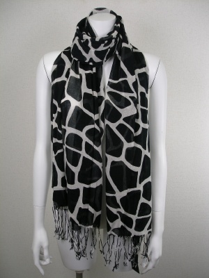 黒のシフォンワンピースにカーディを組み合わせて大人っぽいムードに。キリン柄のストールも黒×白でシックなエレガントに!エレガンス度100%。
