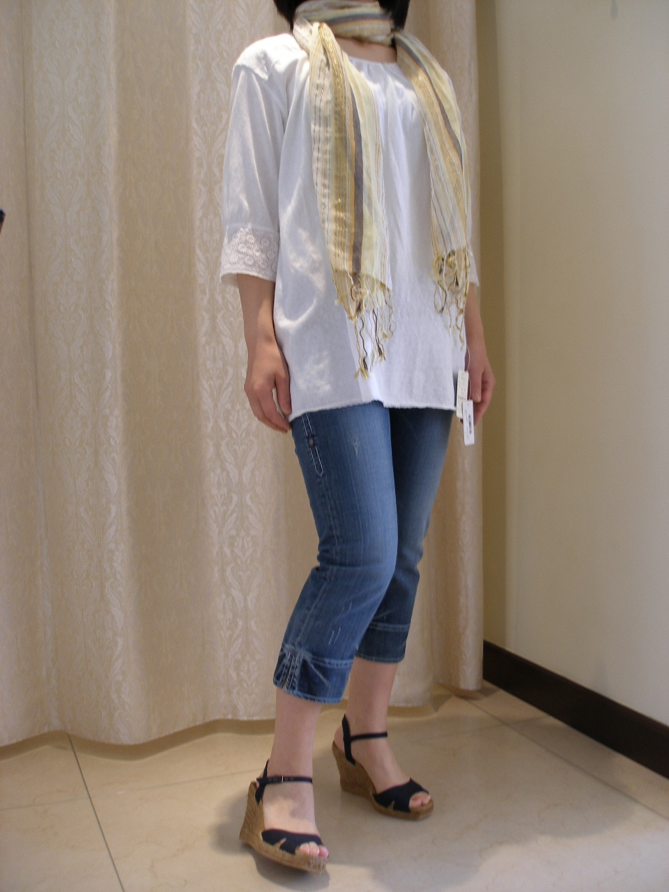 もう一枚は短い丈のデニムをはきたいとの事だったので、全体をコーディネートしてみました。とても気に入って下さって、ご本人も「揃えてもらえるのでとても嬉しい」とおっしゃって下さいました!