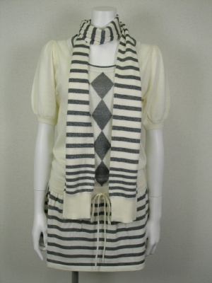 ストール付きキュートなニットチュニックとレギンスを組み合わせて今年流行りのニーハイブーツで可愛く決めてみました!フェミニン度80%、スタイリッシュ度20%。