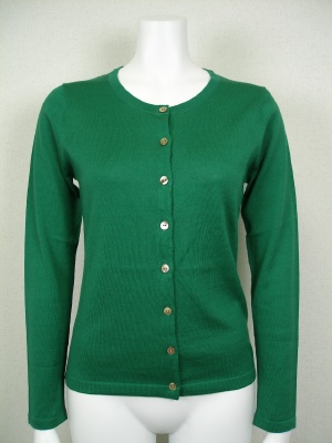 クールネックカーデの前を閉じて着れば、ボリュームスカートに丁度良いコンパクトさに!フェミニン度90%、スタイリッシュ度10%。